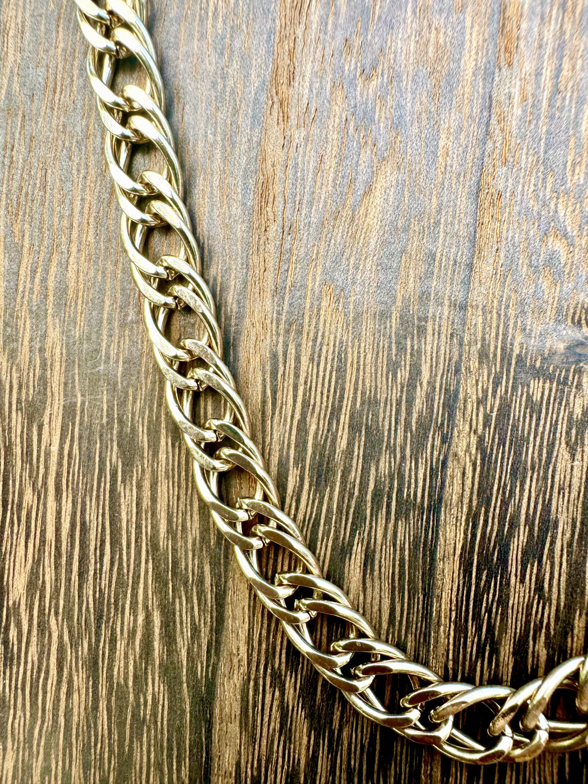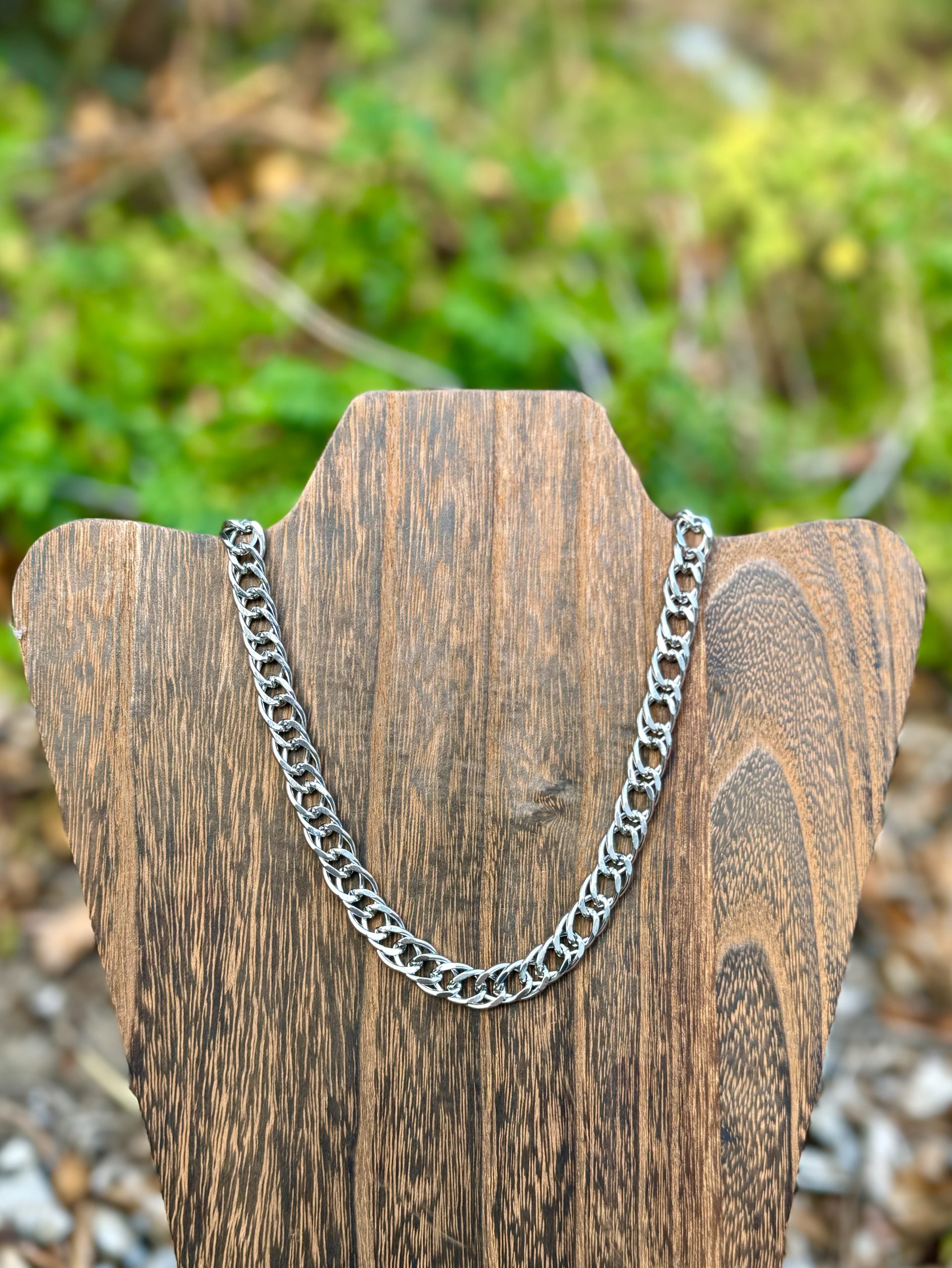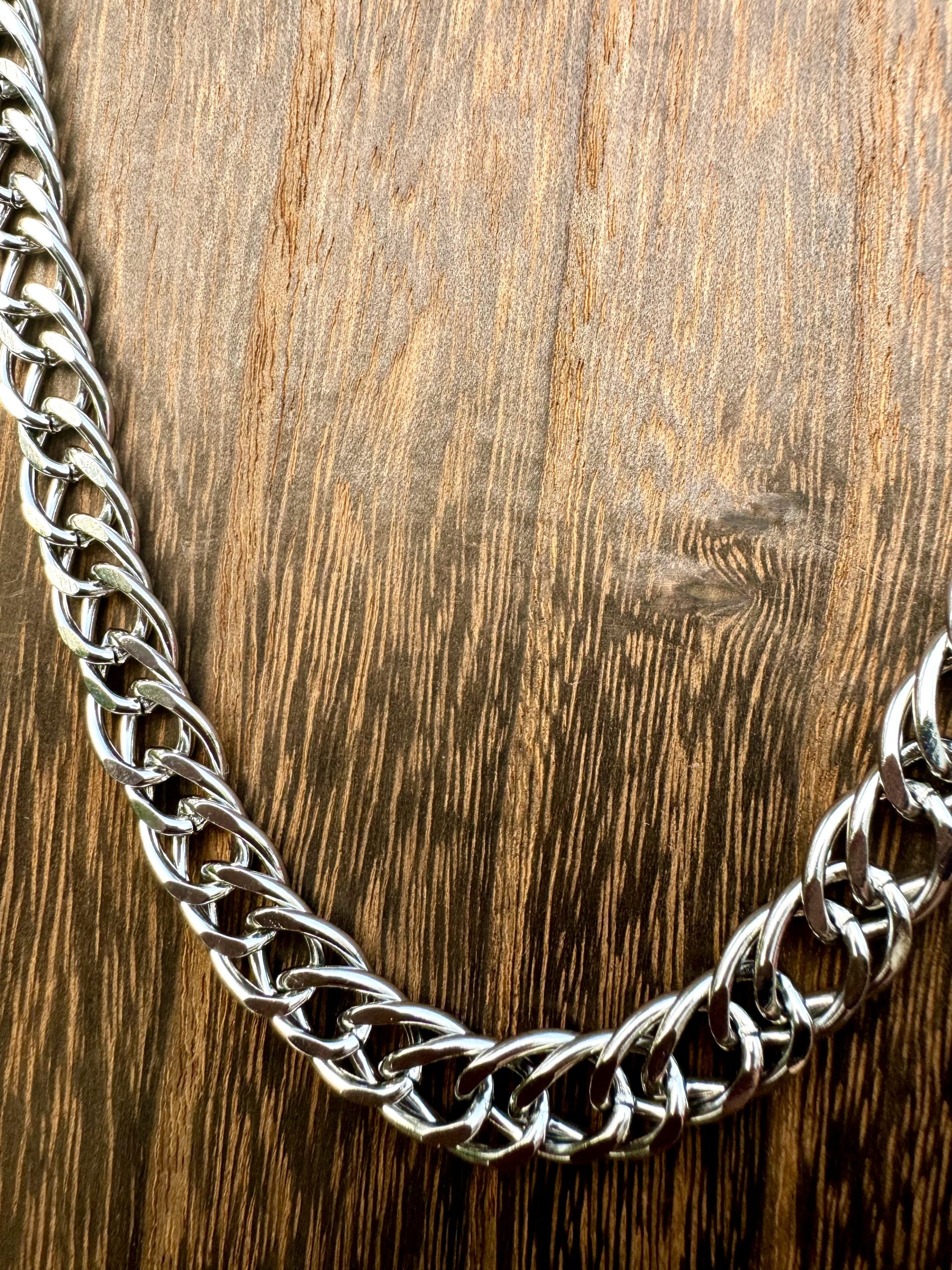 Introducing the Double Curb Chain Necklace—a bold accessory that effortlessly fuses modern style with timeless sophistication. Featuring intricately interlocking curb links, this piece is expertly crafted to deliver a look that is both edgy and refined. Its sleek, polished design and substantial feel make it a standout on its own or the perfect layering piece. Whether paired with a casual tee or a sharp blazer, this versatile chain brings an instant touch of elegance and contemporary flair to any ensemble. Elevate your style with the Double Curb Chain Necklace—where classic design meets modern attitude.