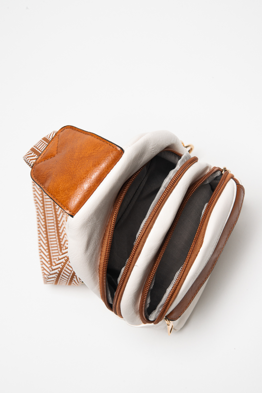 Meet the Street Casual Sling Bag – a stylish solution for hands-free convenience. Featuring a sleek, compact design with multiple zippered compartments, this sling bag offers both fashion and functionality. The contrast of ivory and tan accents adds a modern touch, while the adjustable strap ensures a comfortable fit for any occasion. Perfect for city outings, casual days, or travel, this bag keeps your essentials organized and easily accessible. Elevate your everyday look with this chic and versatile accessory that blends practicality with effortless style.